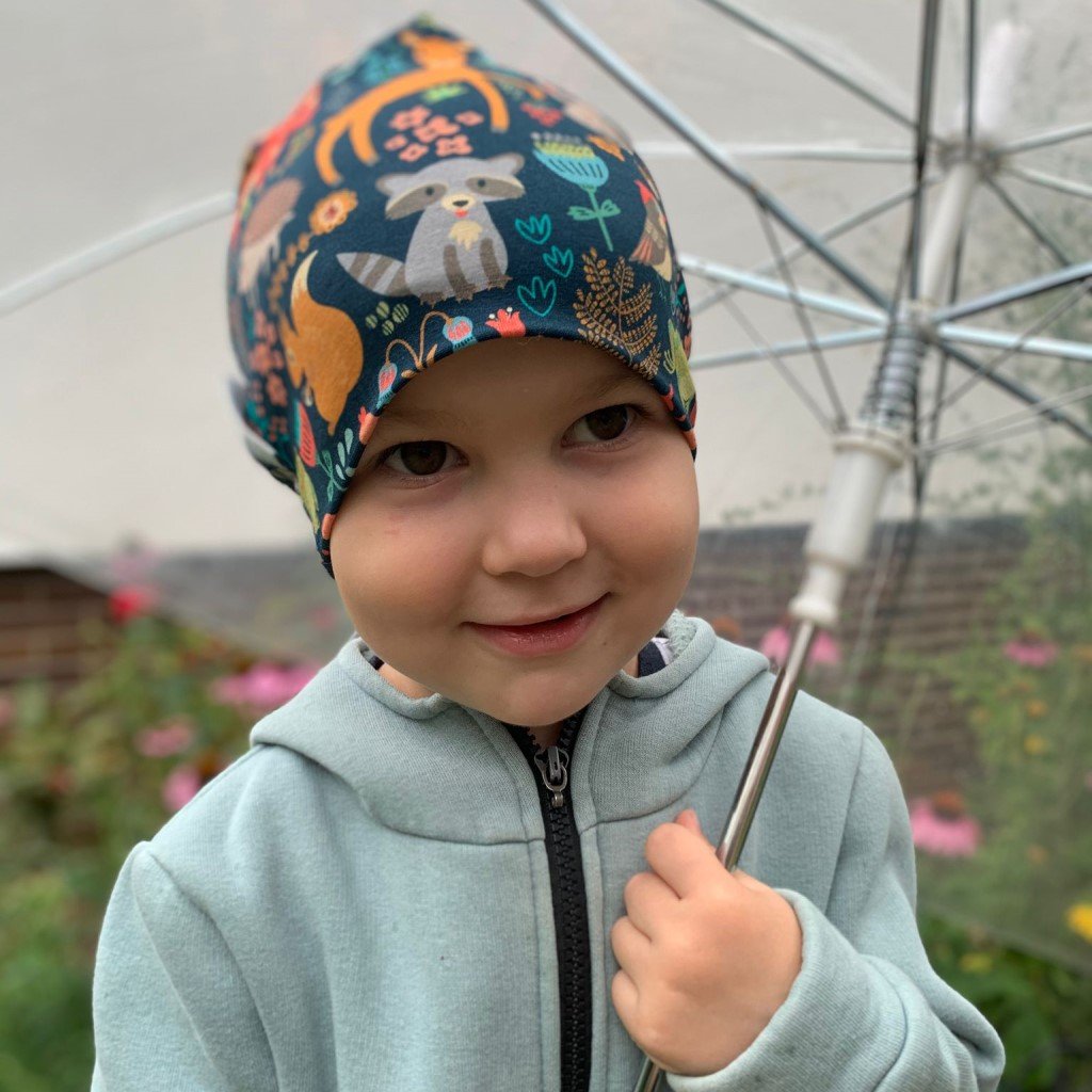 Krásná čepice s barevnými zvířátky pro kluky i holčičky (nebo i pro tatínky a maminky). Je ušitá z dvojitého úpletu a díky malému přídavku elastanu velmi dobře pruží a drží tvar i po řadě vyprání.