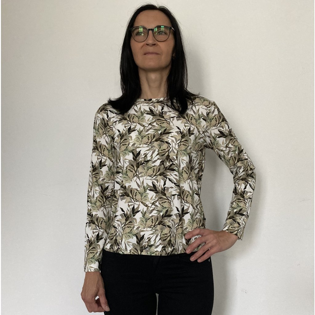 Pokud máte rádi decentní vzory, bude pro vás toto tričko to pravé. Má volnější střih, který schová drobné nedokonalosti postavy. Je ušité z velmi příjemného viskózového úpletu, takže se v něm budete cítit skvěle celý den, a díky malému přídavku elastanu si udrží svůj tvar i po mnoha vypráních.